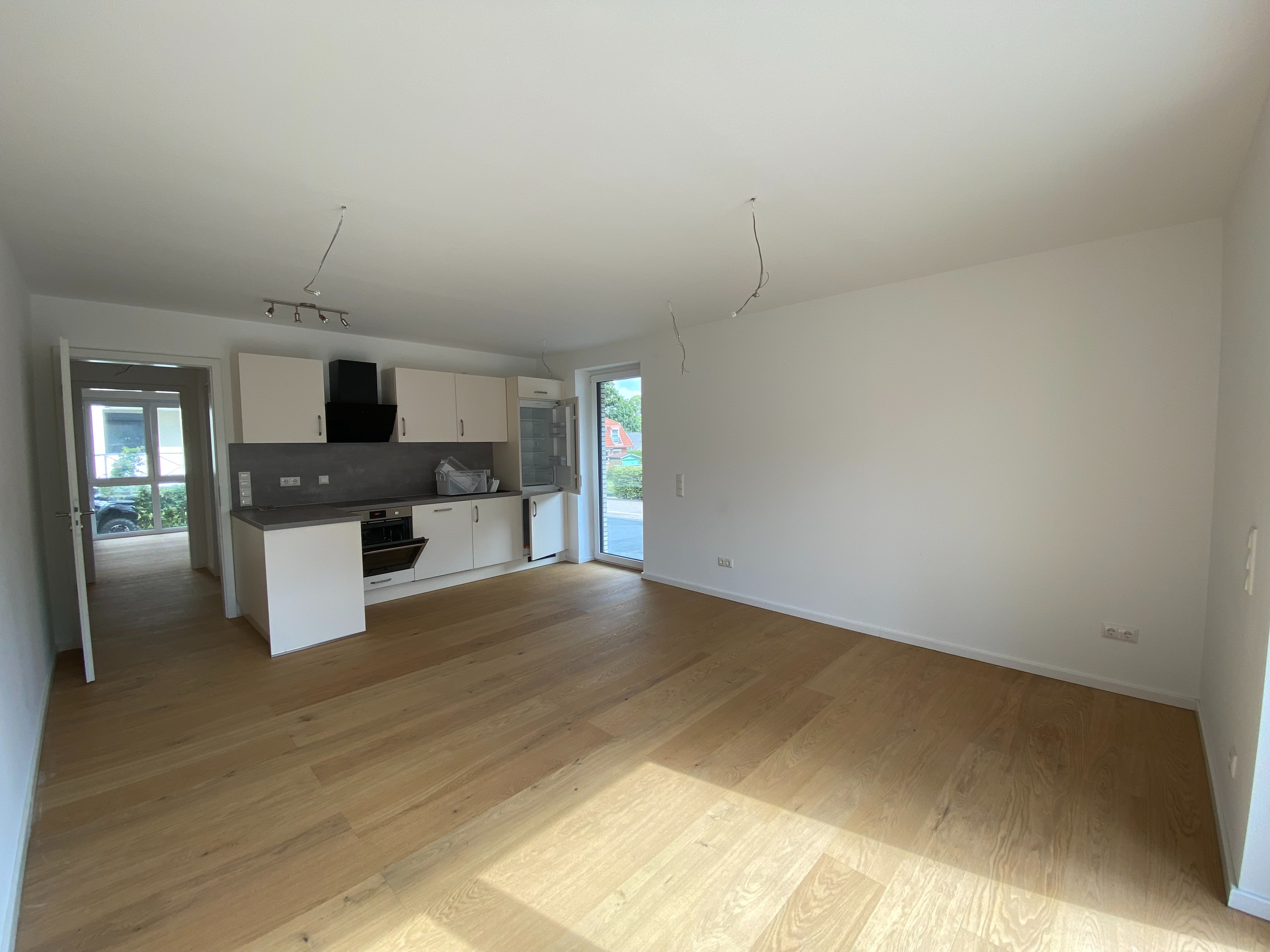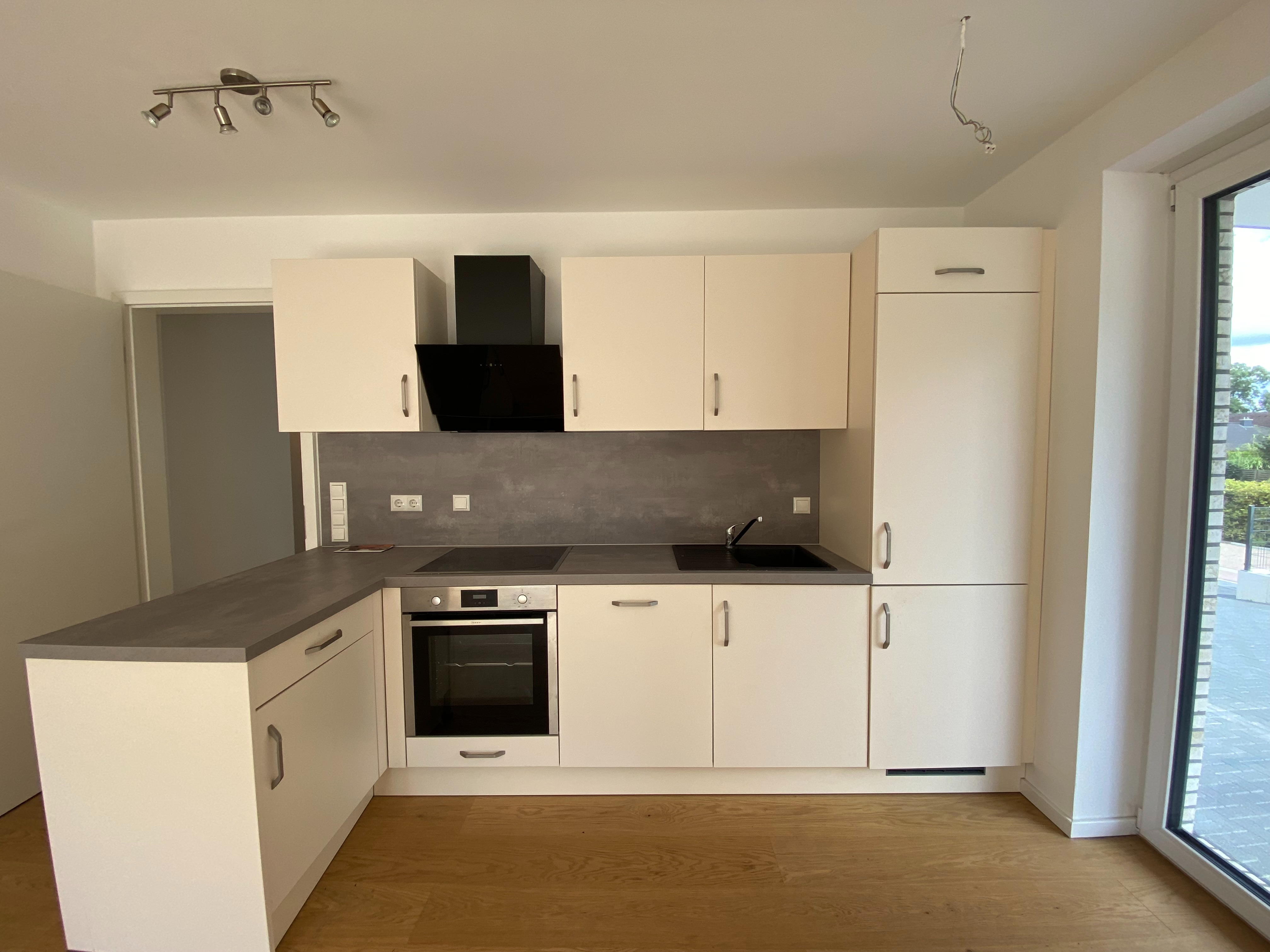 Der großzügig gestaltete Wohn- und Essbereich mit offener Küche bildet das Herzstück der Wohnung. Von hier aus gelangen Sie direkt auf Ihre private Terrasse, die zum Entspannen im Freien einlädt. Die moderne Einbauküche ist mit hochwertigen Markengeräten ausgestattet: Kühlschrank mit Gefrierfach, Induktionskochfeld, Backofen und Geschirrspüler.