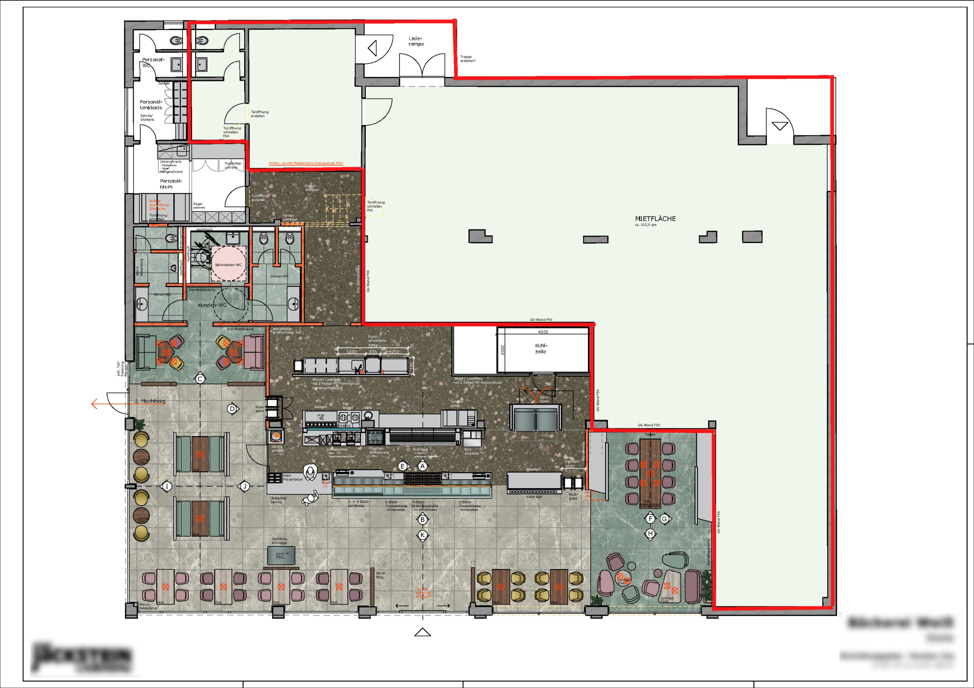 Im Exposé ist der Grundriss einsehbar. Es handelt sich um die Fläche, die im Plan rot umrandet ist.