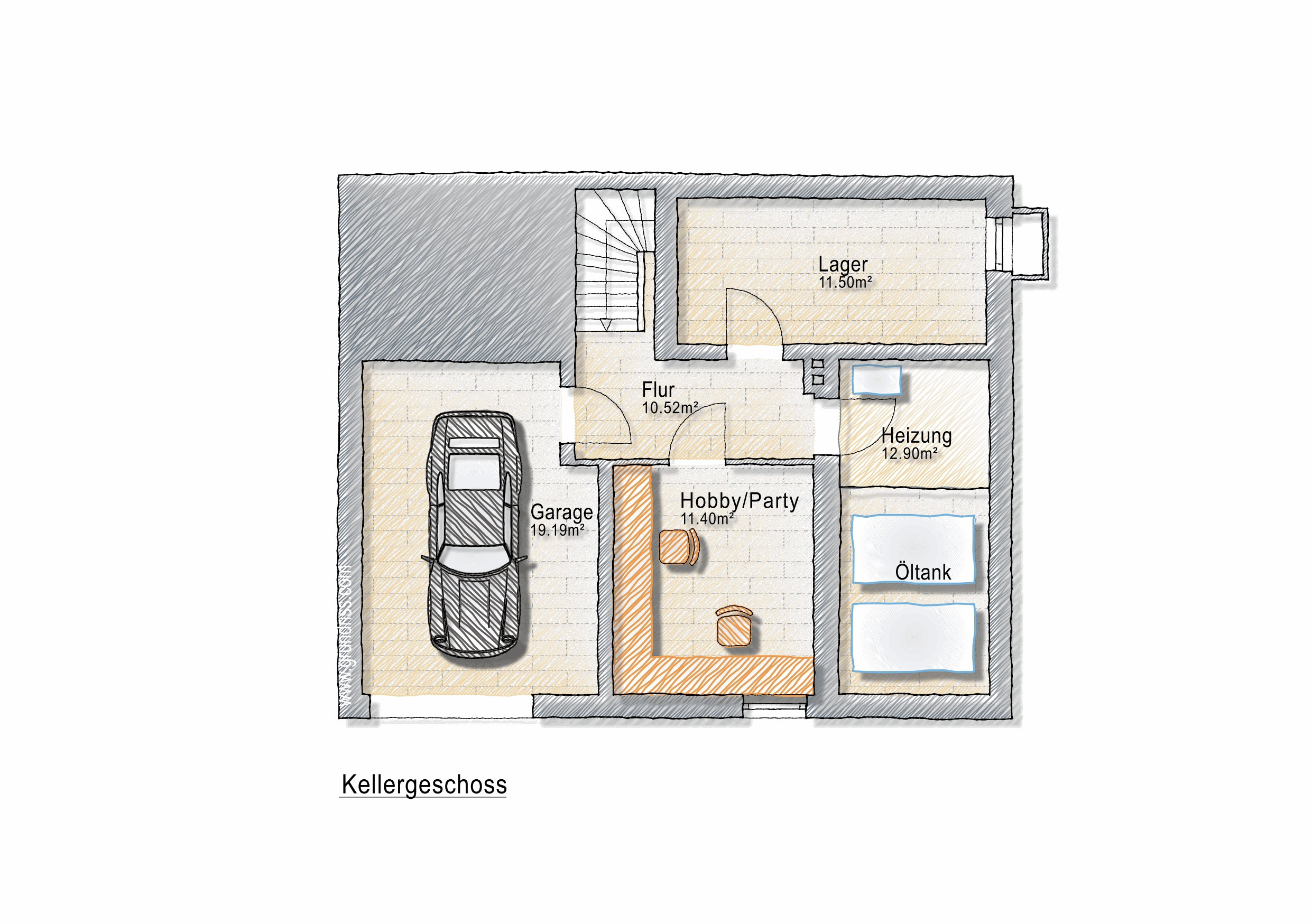 Das Kellergeschoss ist über die Tiefgarage zugänglich und bietet Platz für Auto und Fahrräder. Im Hausinneren führt die Kellertreppe zu einem Partyraum, einer Werkstatt sowie dem Heizungskeller. Im Dachgeschoss steht Ihnen eine großzügige Abstellfläche zur Verfügung.