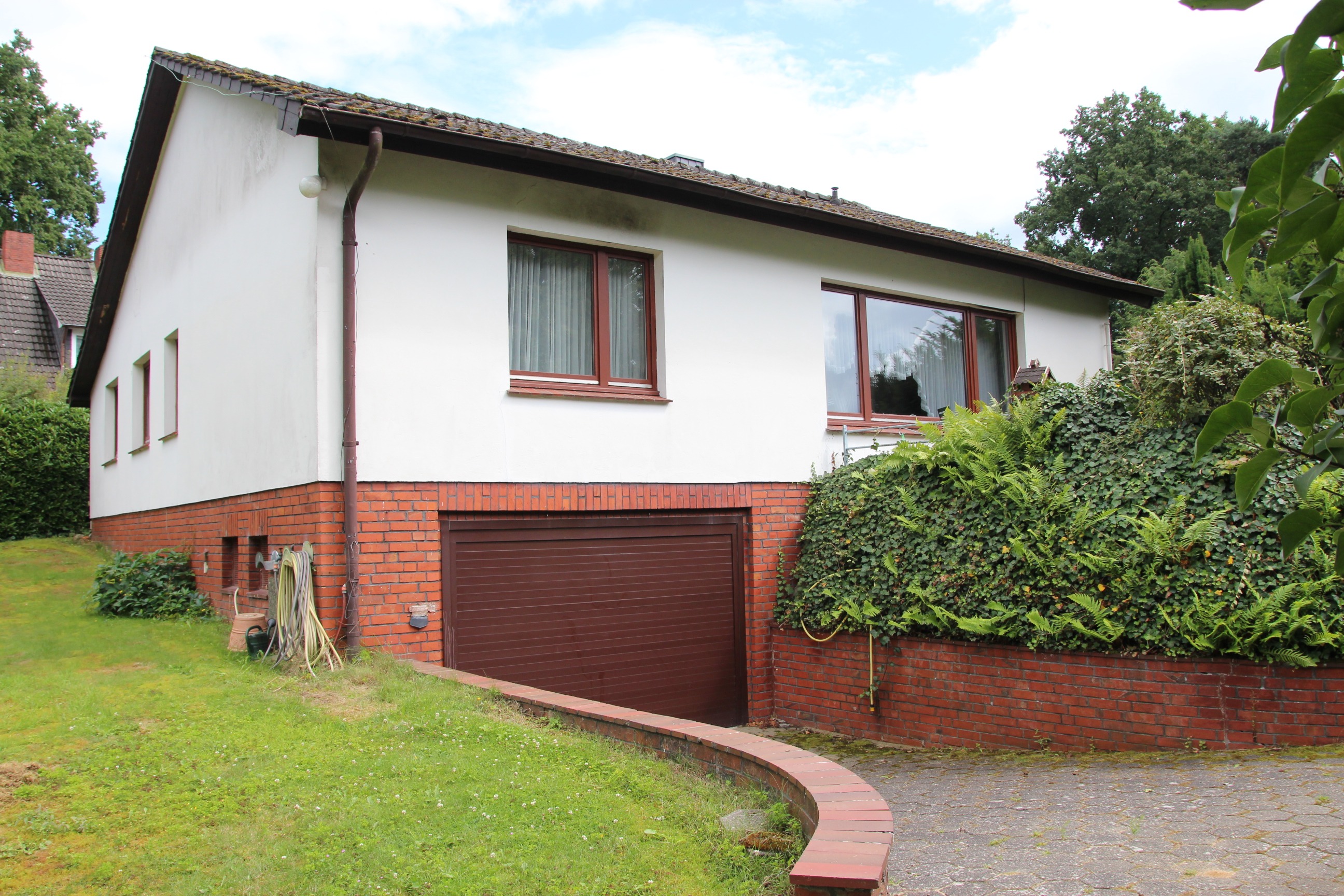 Hausansicht mit Garagenzufahrt